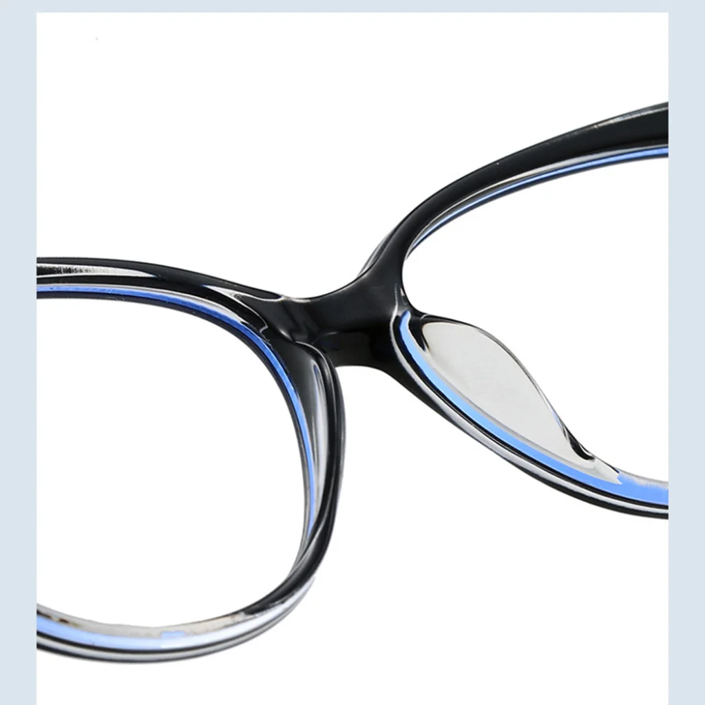 A lencsék speciális bevonata, amely egyes képeken diszkrét kékes árnyalatban is megmutatkozhat, a kékfény-szűrő képesség jele, miközben a látásélességet és a színek valósághűségét maximálisan megőrzi.