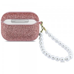 Apple AirPods Pro 3 Guess Glitter Gyöngy Pánt tok rózsaszín