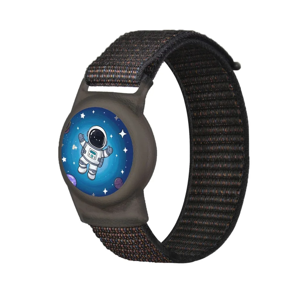 Apple AirTag Gyerek Nylon Csuklópánt Tok - Űrhajós és Fekete Pánt
