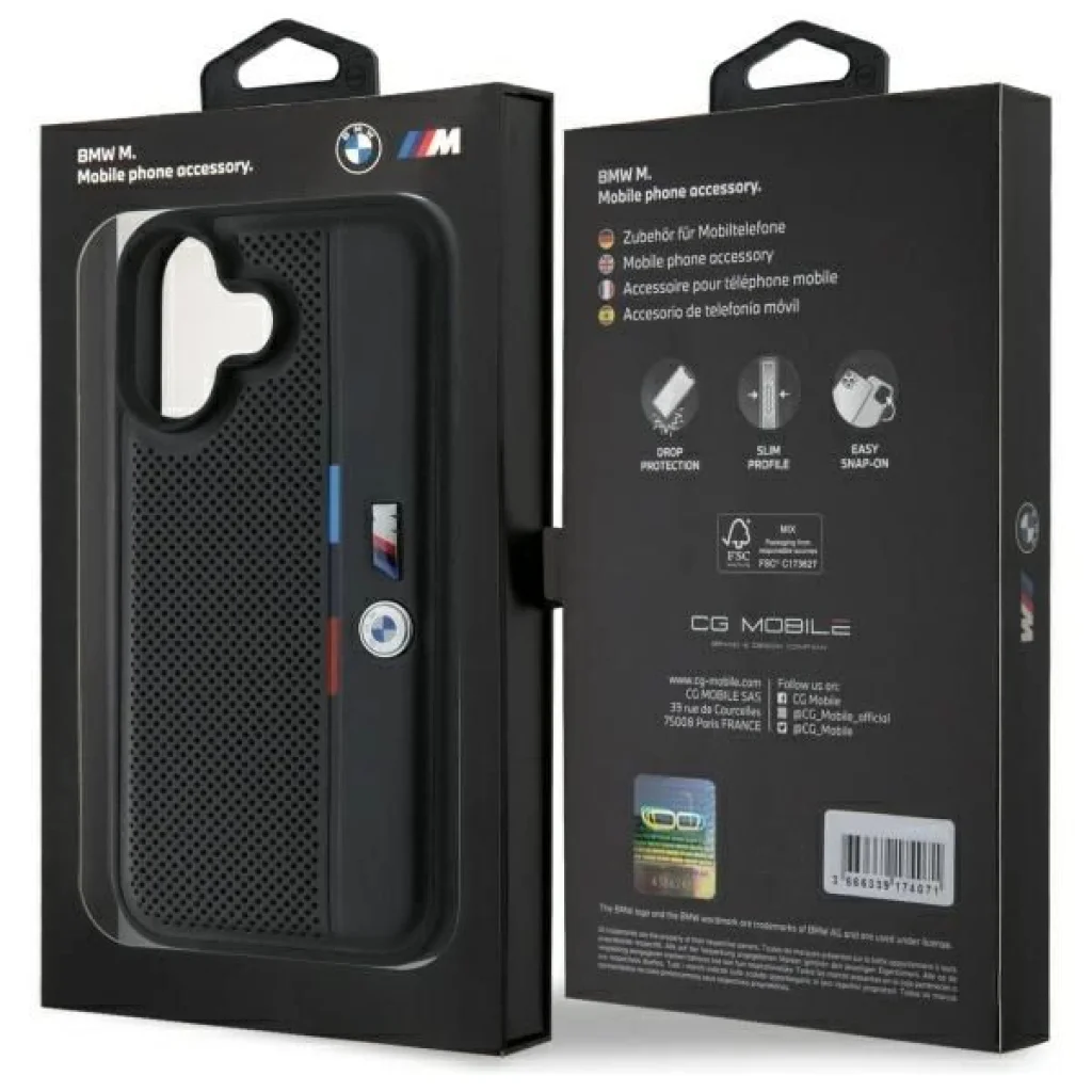 Az M Perforált Trikolor Részletvonal a BMW exkluzív tokja a világhírű autóipari cég M Perforált Trikolor Részletvonal kollekciójából.