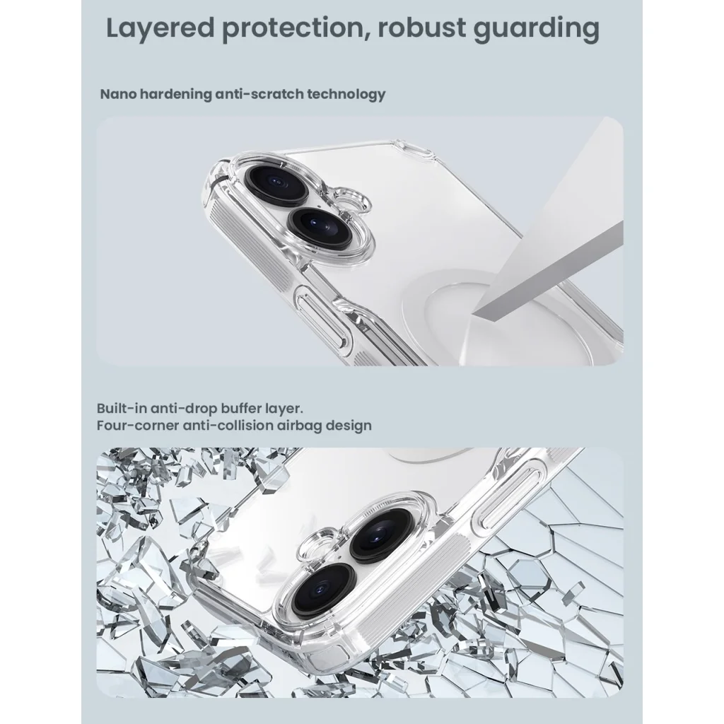 A Nillkin Nature TPU PRO mágneses védőfliptok beépített mágnessel van ellátva, amely kompatibilis az Apple MagSafe kiegészítőkkel. Az alap Nature TPU modellhez képest a tok mágnessel is rendelkezik, és két anyag: PC/TPU kombinációjából készült.