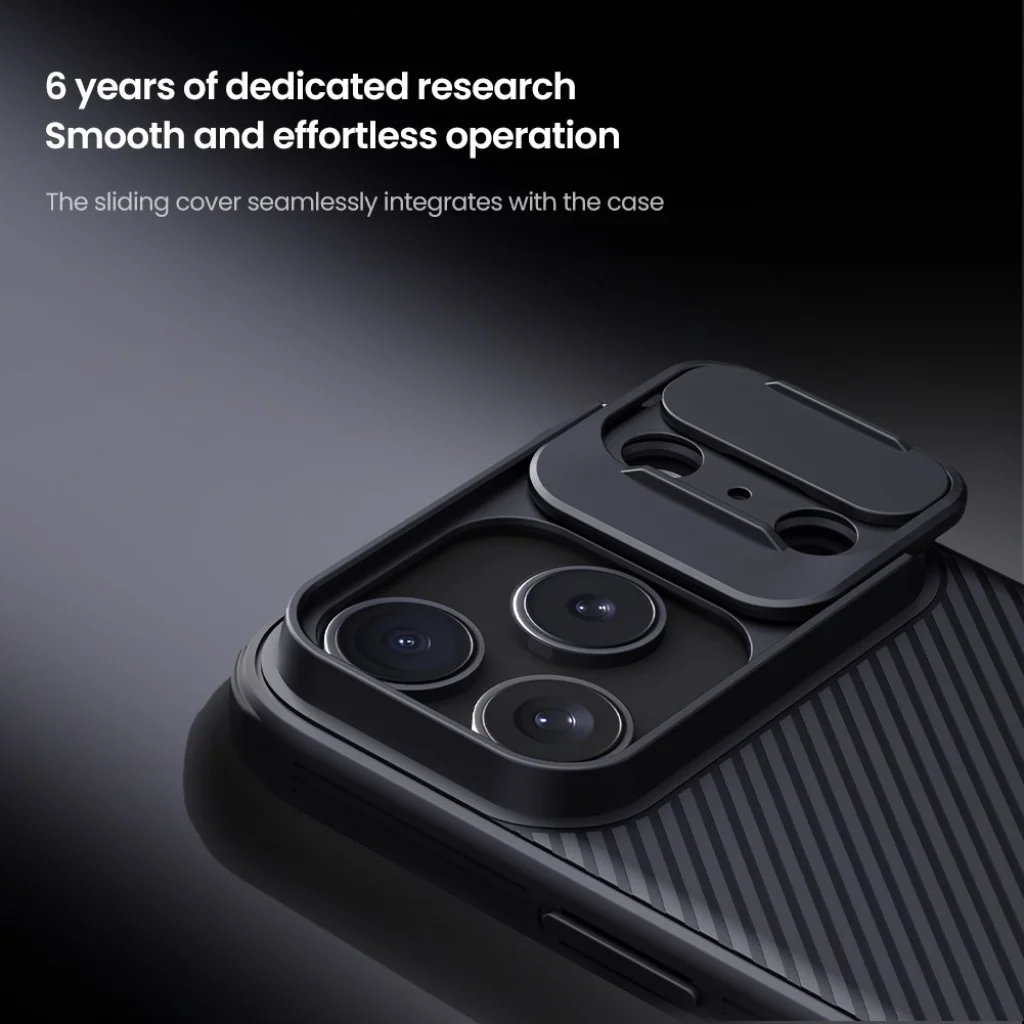 A Nillkin CamShield PRO egy egyedi tok, amely csúsztatható kamera lencsevédőt tartalmaz.