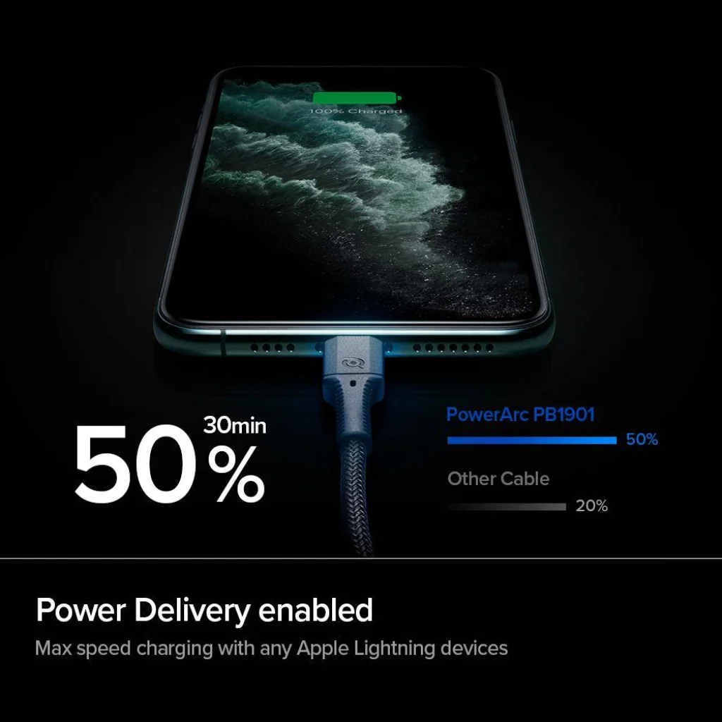 Termék leírás Flexibilis USB-C - Lightning kábel PD támogatással és Apple MFI minősítéssel 100W teljesítmény 480Mb/s adatátviteli sebesség Nylon szigetelésű, ellenálló kábelcsomók kialakulásával szemben 1m hosszúság