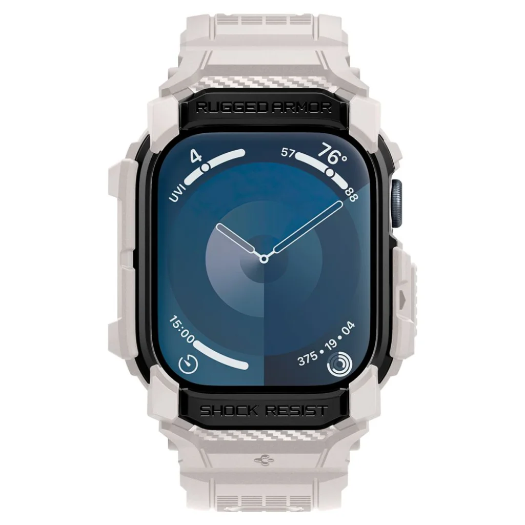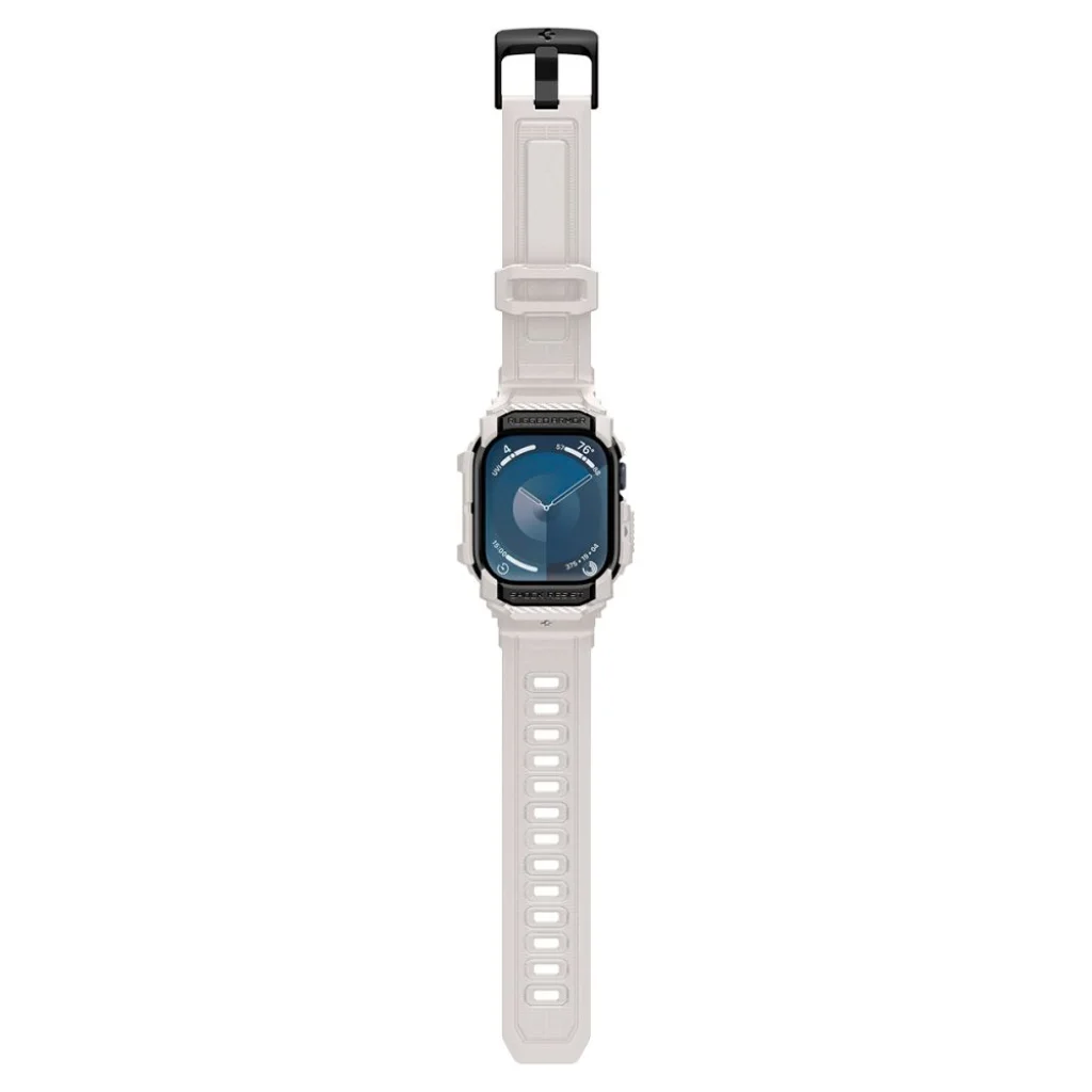 Kényelmes, sportos stílusú fliptok Spigen Rugged Armor Pro rugalmas TPU anyagból, szénszálas díszítéssel. Integrált tokot tartalmaz kiemelt élekkel, amely lehetővé teszi az óra házának védelmét a karcolások és ütések ellen. A szíj teljes funkcionalitással rendelkezik, és egyedi igények szerint állítható.