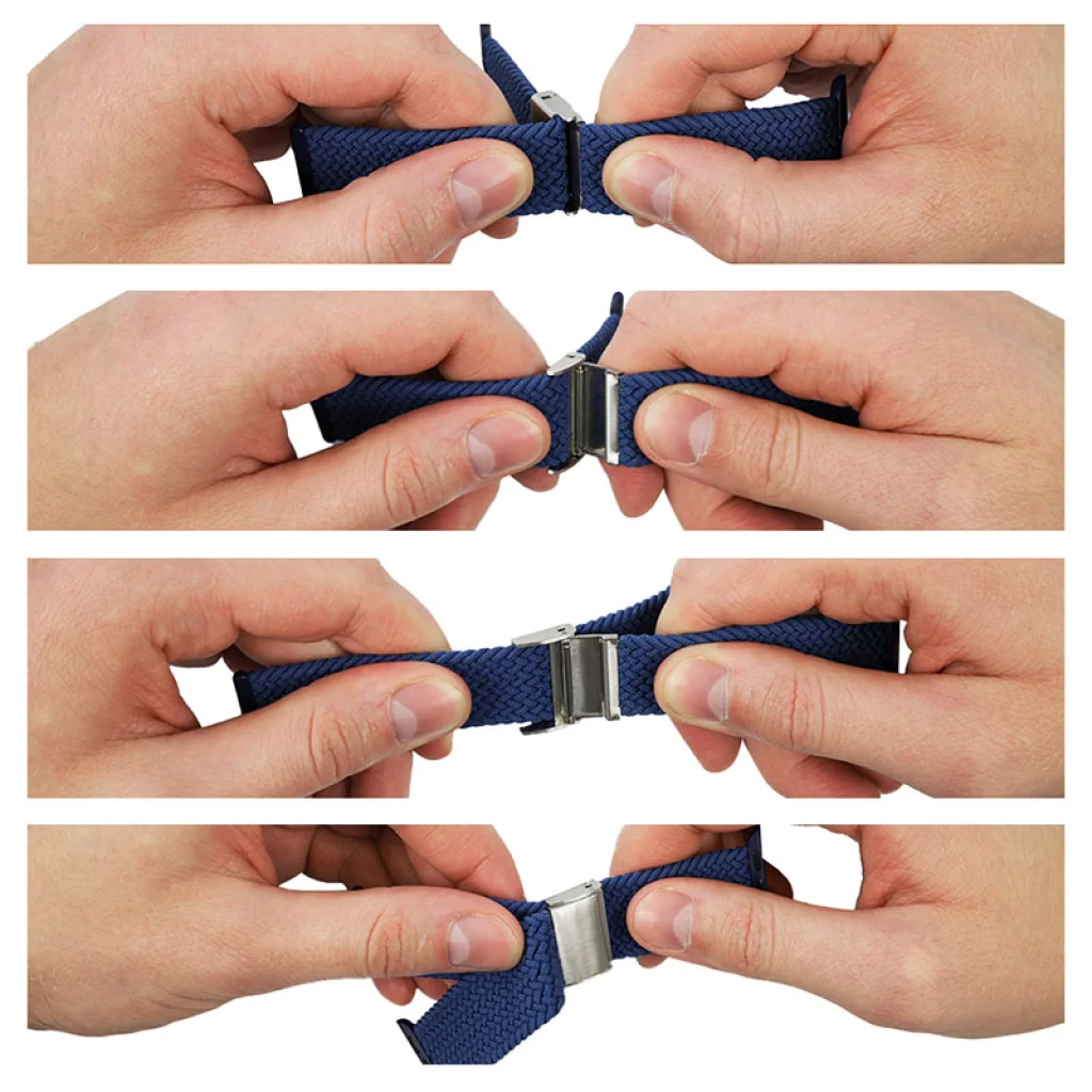 A Wave Band egy fonott szíj rozsdamentes acél csattal az Apple Watch számára. A rugalmas és légáteresztő szálak magas viselési kényelmet garantálnak, miközben egyedi dizájnt kínálnak. A fém csat lehetővé teszi a szíj hosszának beállítását, hogy minden kézhez illeszkedjen. A szíj ezután a csat kioldása nélkül levehető és feltehető, aminek köszönhetően gyorsan csatlakoztathatjuk a töltőhöz.