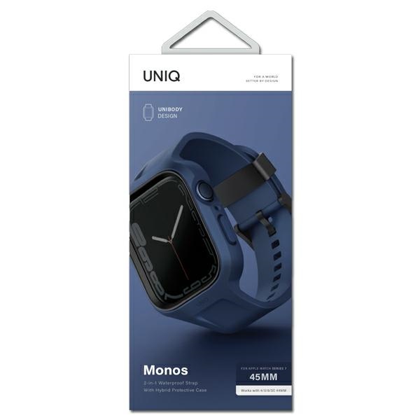 Az UNIQ MONOS egy egy darabból álló szíj beépített védőtokkal, amely maximális kényelmet és könnyű felszerelést biztosít. A szíj rugalmas termoplasztikus poliuretánból készült, és tartalmaz egy emelt keretet, amely tartós polikarbonátból készült a jobb védelem érdekében. A szíj precízen van megtervezve, hogy teljes hozzáférést biztosítson az óra minden funkciójához. Az állítható szíjhosszúság a megfelelő számú lyukak biztosításával érhető el, és az acél csat rozsdamentes anyagból készült, hogy tökéletesen illeszkedjen a csuklóra. Gyűjtemény: Monos, Típus: Szíj tokkal, Szín: Kék, Hossz: 16-22 cm, Kompatibilitás: Apple Watch 4/5/6/7/8/9/SE/SE2/SE3 44/45 mm.