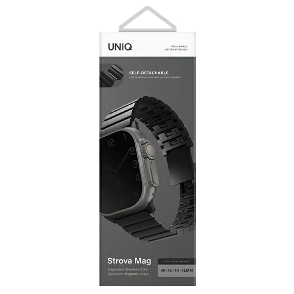 A STROVA MAG az új prémium rozsdamentes acél szíjunk, amelyet az első generációs STROVA helyett vezettünk be a piacra 2021-ben. Önműködően állítható láncszemekkel rendelkezik, amelyek könnyen kapcsolódnak, és nem igényelnek további eszközöket a kényelmes hosszúság állításához. A prémium 304 rozsdamentes acél óraszíj biztonságos mágneses csattal és gyorsan oldható oldalsó gombokkal rendelkezik, fényes és kefélt felülete van, és ellenáll a karcolásoknak, horpadásoknak és ujjlenyomatoknak.