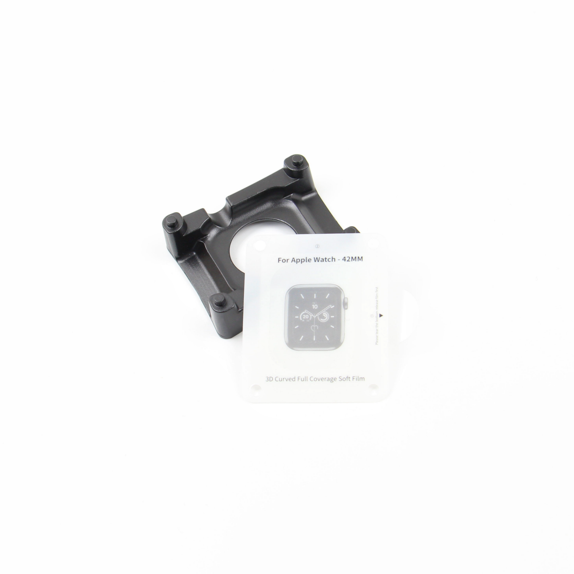 - Helyezze fel a pozicionáló keretet az óra kijelzőjére, majd illessze bele a védőfóliát. Ez segít a tökéletes pozicionálásban.