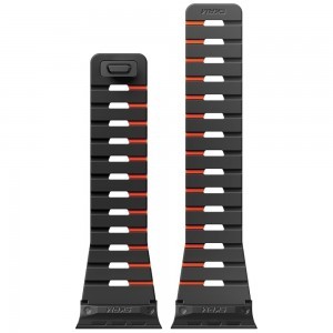 Az elegáns, kéttónusú szíj a mindennapi kényelem és funkcionalitás jegyében készült. Az innovatív rögzítő és beállító rendszernek köszönhetően tökéletesen illeszkedik a csuklóra, egész napos kényelmet biztosítva. Az esztétikai részletek, mint például a precízen kidolgozott logó, kiemelik a szíjat a tömegből. A szíj megmunkálásának magas precizitása biztosítja a biztonságérzetet, miközben nem korlátozza az óra funkcionalitását, könnyű hozzáférést biztosítva a gombokhoz és portokhoz.