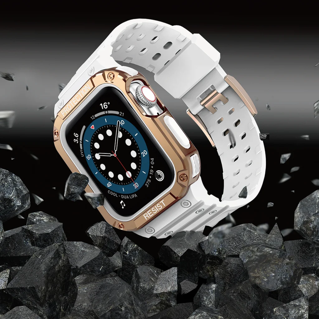 Apple Watch 8/7/6/5/4/3/2 / SE (41/40 / 38mm) Armored Óraszíj és Tok Fehér / Bronz