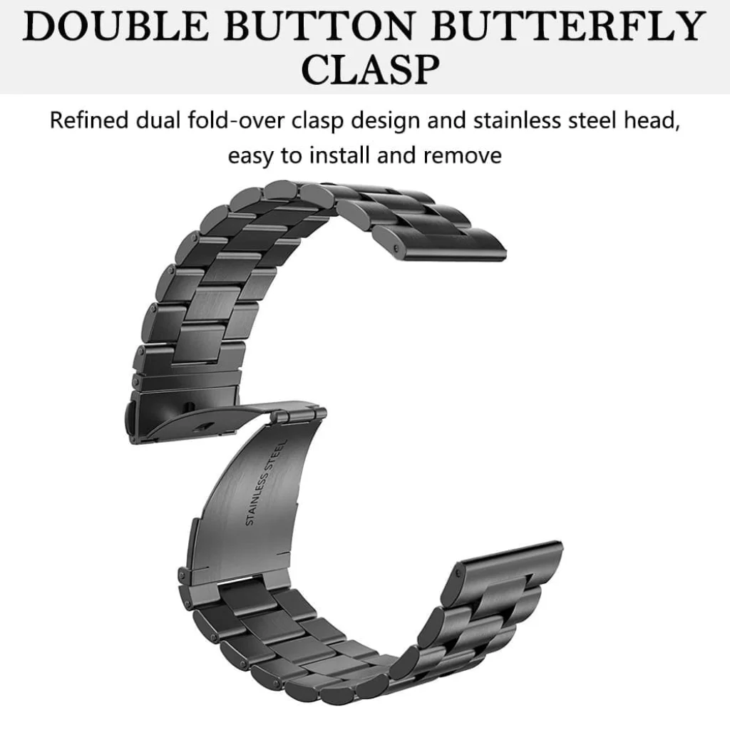 - Prémium rozsdamentes acél anyag: A szíj kiváló minőségű rozsdamentes acélból készült, amely garantálja a tartósságot, a korrózióállóságot és a hosszantartó, fényes megjelenést. A fekete szín modern és időtlen eleganciát sugároz.