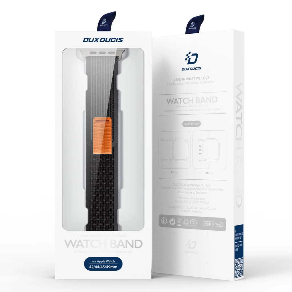 Apple Watch Ultra/8/7/6/SE/5/4/3/2/1 (42, 44, 45, 49 mm) Dux Ducis Tépőzáras sportszíj YJ változathoz fekete-szürke