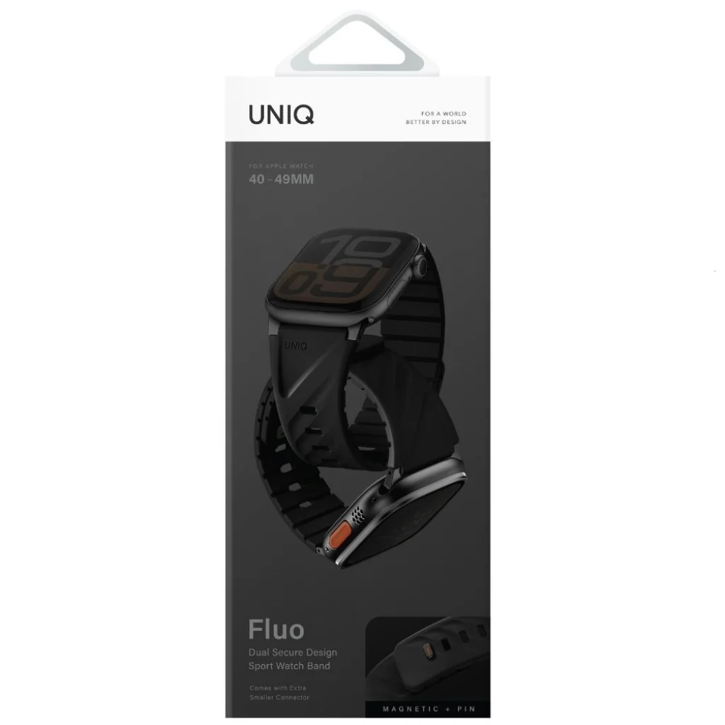 Kivételes design és tartósság: A UNIQ Fluo Mágneses szíj az Apple Watch-hoz egyesíti a szilárd konstrukciót az egyedi stílussal. Rugalmas, vízálló szilikonból készült, ellenáll az izzadságnak, nedvességnek és szennyeződésnek, ugyanakkor megőrzi puhaságát és rugalmasságát hosszú távú használat során.