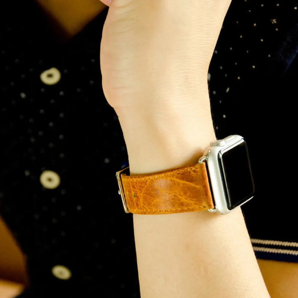 Elegáns, kézzel készített szíj Apple Watchhoz marhabőrből, rozsdamentes acél szerelékekkel.