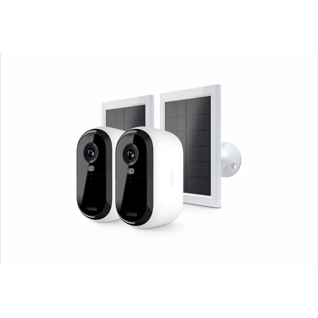 Arlo Essential (2. Generáció) Csomag 2K Kültéri Biztonsági Kamera - 2 Kamerás Készlet + 2 Alapvető Napelemes Töltő - Fehér