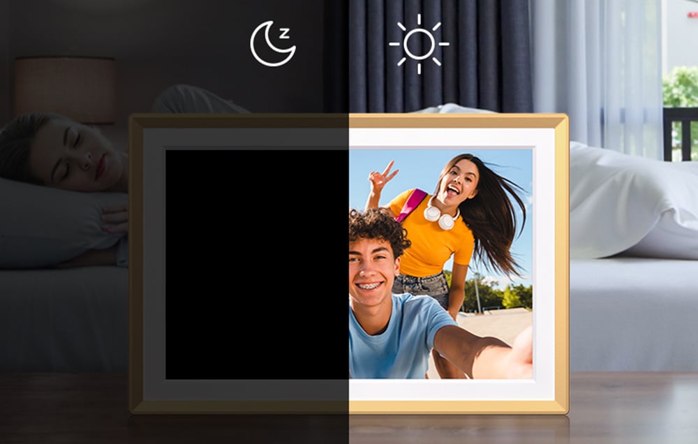 Intelligens képforgatás: A készülék automatikusan beállítja a képernyő tájolását a keret tájolásának megfelelően, így a fényképek és videók mindig helyesen jelennek meg - függetlenül attól, hogy az Arzopa D14 Arany keretet függőlegesen vagy vízszintesen helyezi el. Ez a funkció sokoldalúan használhatóvá teszi a készüléket bármely belső térben, legyen szó akár polcról, asztalról vagy falról.