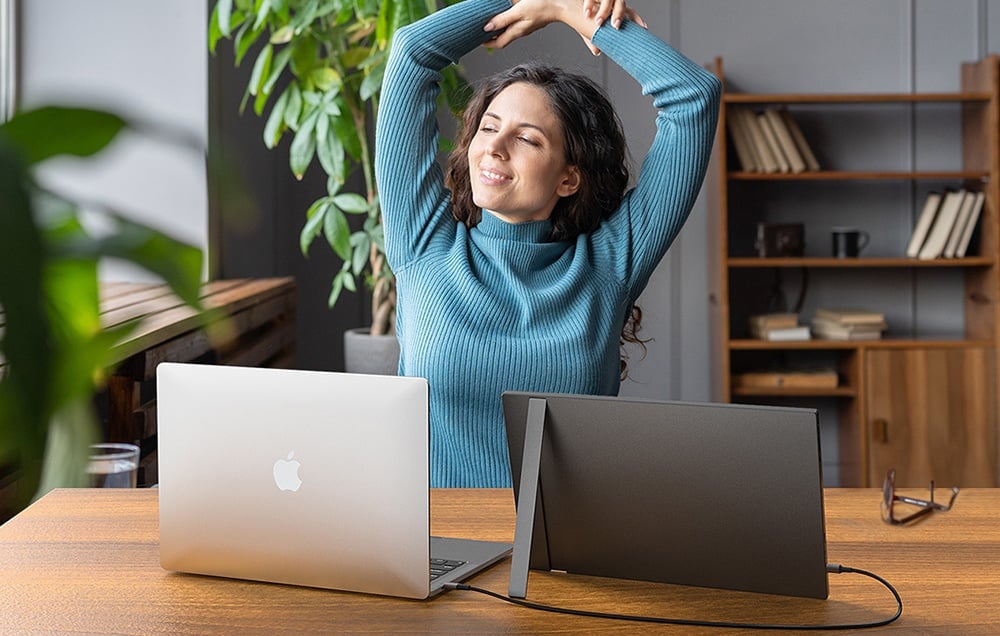 Az Arzopa Z1C 16,1'' hordozható monitor kényelmes választás azoknak, akiknek szükségük van egy extra képernyőre - otthon, üzleti úton vagy távoktatás közben. Kompakt méretének és karcsú kialakításának köszönhetően könnyen elfér a laptop táskájában, könnyű súlya (780 g) pedig nem nehezíti meg a poggyászát. Jó választás, ha úgy szeretné bővíteni a munkaterületét, hogy közben nem foglal sok helyet.