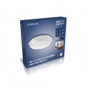 A LED fényforrásokat tartalmazó Asalite LED Mennyezeti Lámpa a jó minőségű és megbízható LED-chipeknek és drivernek, valamint a modern gyémánt formának és a csillagmintás búrának köszönhetően dekoratív és hosszú távú megoldást jelentenek a lakásának egyenletes, esztétikus és a szemnek is kellemes megvilágítására. A CCT (változtatható színhőmérséklet) Mennyezeti Lámpáknak 3000K és 6500K között a színhőmérséklete és a fényereje is egyaránt fokozatmentesen állítható a csomagolásban található távirányítóval.