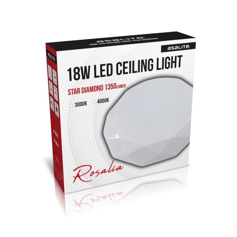 A LED fényforrásokat tartalmazó Asalite LED Mennyezeti Lámpa a jó minőségű és megbízható LED-chipeknek és drivernek, valamint a modern gyémánt formának és a csillagmintás búrának köszönhetően dekoratív és hosszú távú megoldást jelentenek a lakásának egyenletes, esztétikus és a szemnek is kellemes megvilágítására.