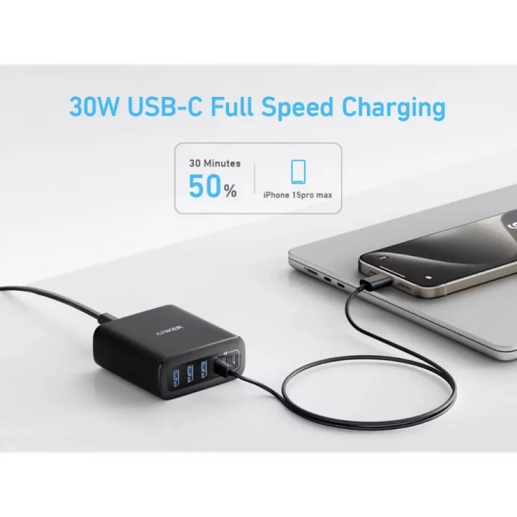 Az Anker 112W asztali töltő (A2154G11) a tökéletes megoldás minden töltési igényére, akár otthon, akár az irodában. Felejtse el a kusza kábeleket és a kevés konnektor okozta fejfájást! Ez az erőteljes és sokoldalú asztali töltő egyszerre akár hat eszközét is képes feltölteni, maximális sebességgel és teljes biztonsággal.