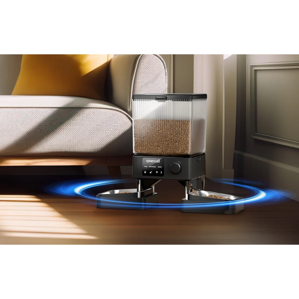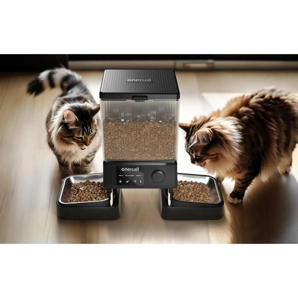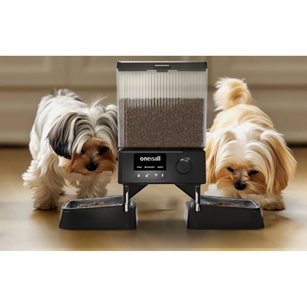 Gondoskodj kisállataid egészséges étrendjéről. Az Oneisall PFD-002 ételadagoló két ételtálat kínál, így mindkét kisállat egyszerre használhatja azt. Ráadásul a tartály akár 2,1 kg ételt is képes tárolni, így nem kell gyakran újratöltened. Az elérhető alkalmazás segítségével ütemezhetsz, és távolról vezérelheted a készüléket - biztos lehetsz benne, hogy kisállatod akkor is kap élelmet, ha nem vagy otthon. Az adagoló kétféleképpen működik, és macskák, valamint kutyák is használhatják.