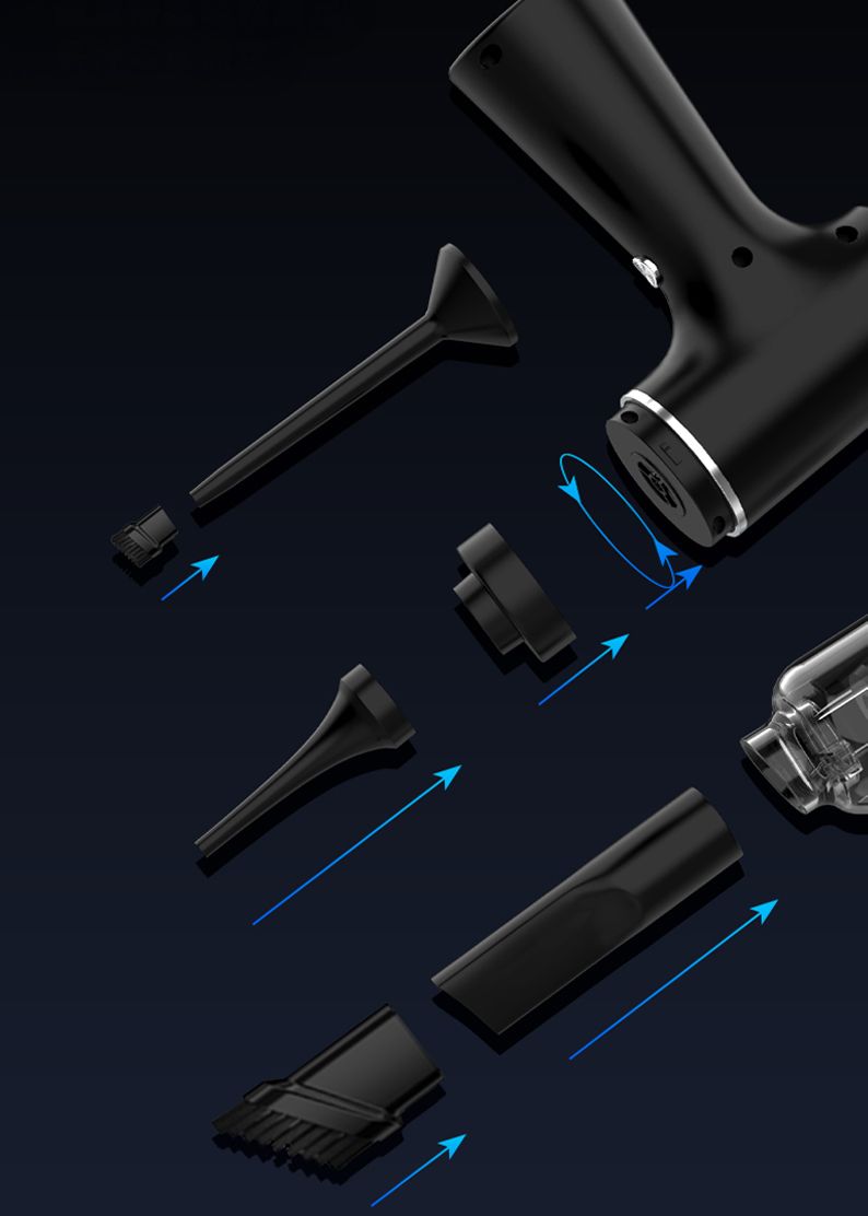 A kézi, vezeték nélküli autós porszívó nélkülözhetetlen kiegészítő, amely gyorsan kitisztítja az autó összes zugát, valamint az otthonában vagy irodájában nehezen elérhető helyeket. A 02-es modell 4000 Pa szívóteljesítménnyel tökéletes megoldást nyújt a kisebb felületek gyors tisztítására. A két 1500 mAh-s akkumulátornak köszönhetően a készülék akár 15 percig is működik egyetlen feltöltéssel. Kompakt méretei (21,5 × 18 × 6,1 cm) és könnyű kialakítása (527 g) kényelmes használatot és tárolást biztosítanak.