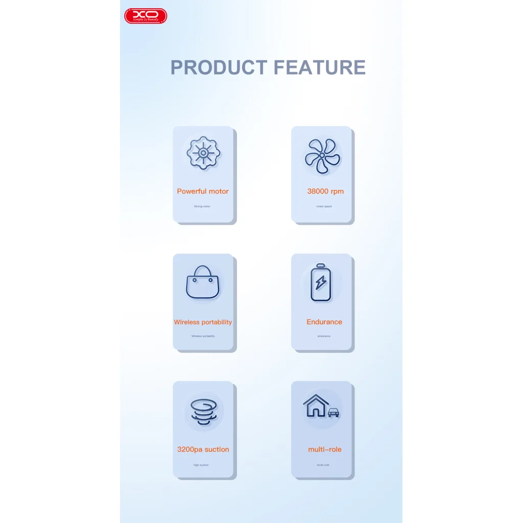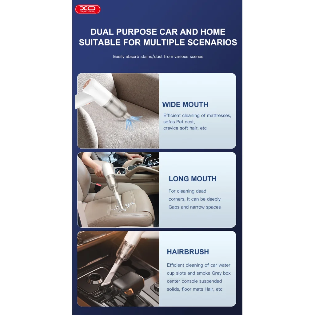 Autós porszívó XO CZ007 fehér vezeték nélküli 3200pa