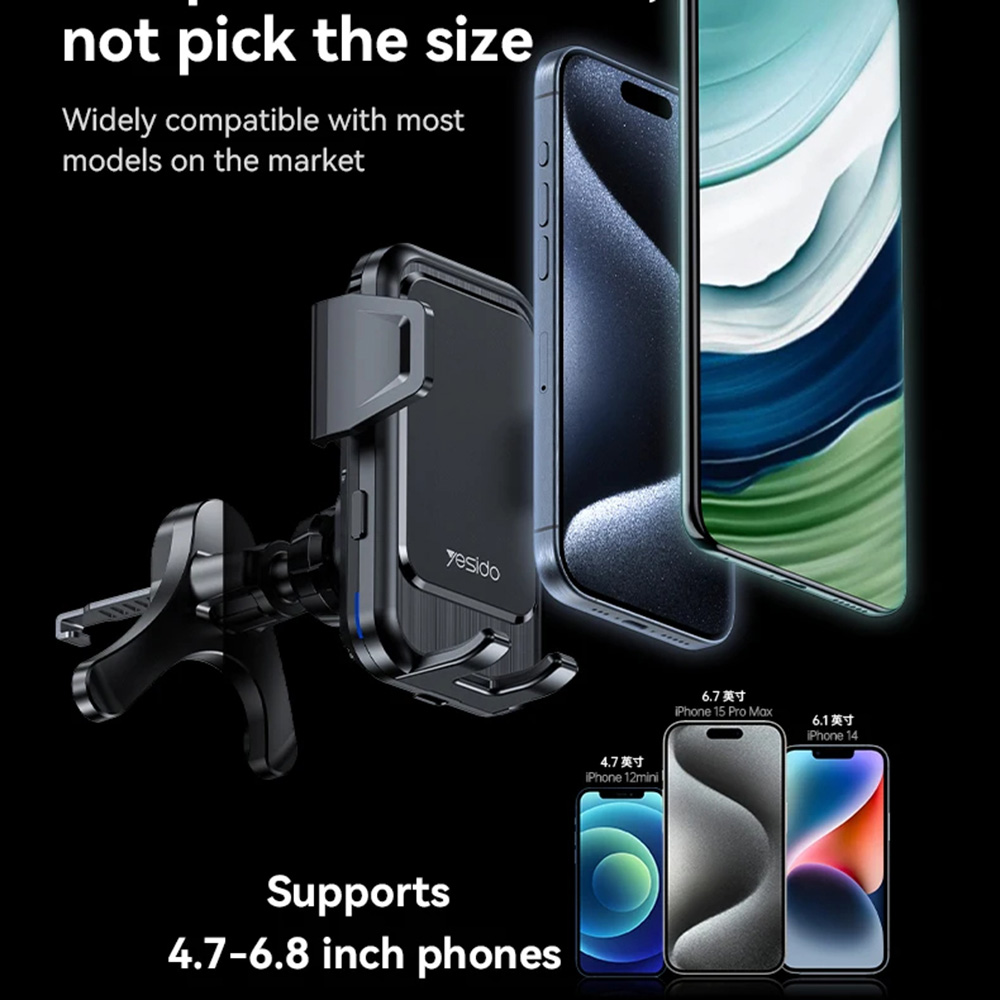 A Yesido C312 stabil és biztonságos rögzítést kínál a légbeömlőre. A "bionikus csőr" kialakítású kampó rugalmas és univerzális, beágyazott rögzítést biztosít, amely szilárdan a helyén tartja a tartót, elkerülve a leesést vagy a kilazulást még rázós utakon is. Fontos, hogy a kampó kialakítása védi a légkondicionáló lamelláit a sérülésektől.