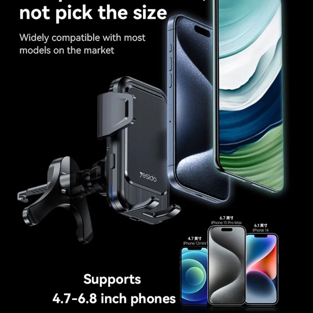 Tapasztalja meg a modern technológia és kényelem ötvözetét az Autós tartó Yesido Vezeték nélküli Töltéssel (C312) segítségével! Ez a légbeömlőre rögzíthető, elegáns fekete tartó nem csupán stabilan megőrzi telefonját, hanem intelligens funkcióival és 15W-os gyors vezeték nélküli töltésével is kiemelkedik.