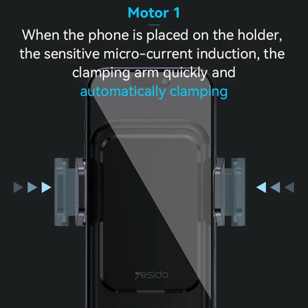 A beépített intelligens indukciós technológiának köszönhetően a telefon elhelyezésekor a tartó karjai automatikusan és gyorsan rögzítik a készüléket egy érzékeny mikro-áram érzékelés révén. A beépített szuperkondenzátor pedig lehetővé teszi, hogy még a motor leállítása után is kinyithassa a tartó karjait, így kényelmesen kiveheti telefonját anélkül, hogy újra be kellene indítania az autót.