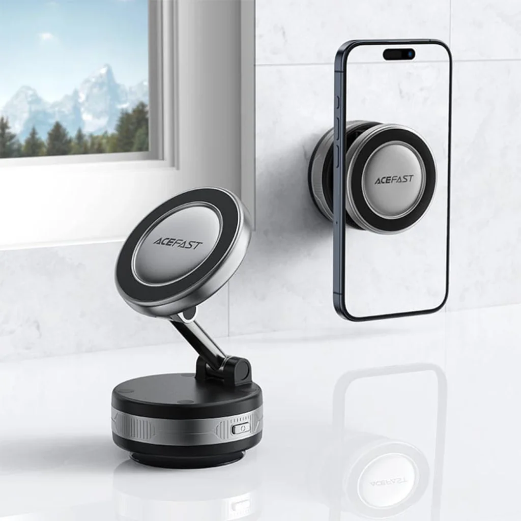- Elektromos vákuumos rögzítés: Az Acefast E30 egy beépített 200mAh akkumulátorral működő elektromos vákuumos tapadókoronggal rendelkezik. Egyetlen gombnyomással hozhatja létre a tökéletes tapadást, amely automatikusan fenntartja a nyomást a hosszan tartó stabilitás érdekében. Nincs több leeső telefontartó!