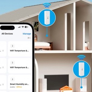 Az Avatto WHS10 intelligens WiFi hőmérséklet- és páratartalom-érzékelő segít fenntartani az ideális klímát bármely helyiségben. A 2,4 GHz-es Wi-Fi csatlakozásnak köszönhetően valós időben pontosan mérheti a hőmérsékletet és a páratartalmat, és azonnali értesítéseket kaphat az alkalmazásban. Az adatok 12 hónapig történő tárolása és a távoli elérés lehetősége révén ellenőrizheti az otthoni, irodai, üvegházi vagy borospincében uralkodó körülményeket. A készülék két AAA elemmel működik, és az intelligens energiatakarékos rendszer automatikusan készenléti üzemmódba kapcsol, amikor az érzékelő nem továbbít adatokat. A piros LED-kijelző jelzi a párosítási módot. Az érzékelő -9,9°C és 60°C közötti hőmérsékletet és 0-99,9% RH közötti páratartalmat figyel. Pontossága ±1°C, illetve ±5% RH, így megbízható adatokat biztosít folyamatos elemzéshez és az intelligens otthoni automatizáláshoz. Az AVATTO APP vagy a Smart Life APP értesít, ha a hőmérséklet vagy páratartalom meghaladja a beállított küszöbértékeket, és grafikonok formájában követheti nyomon azokat. Az AVATTO WHS10 zökkenőmentesen integrálható más okosotthon-eszközökkel. Wi-Fi IR távirányítóval összekapcsolva automatikusan vezérelheti például a légkondicionálót, a párásítót vagy a ventilátort. Távolról is elérheti a hőmérsékletet és páratartalmat Wi-Fi-n keresztül. Az alkalmazásban több érzékelőt is hozzáadhat különböző helyiségek felügyelete érdekében. A készülék méretei 67 × 27 × 21 mm.