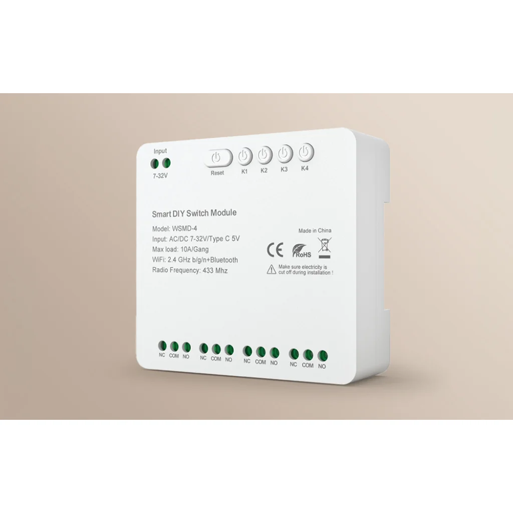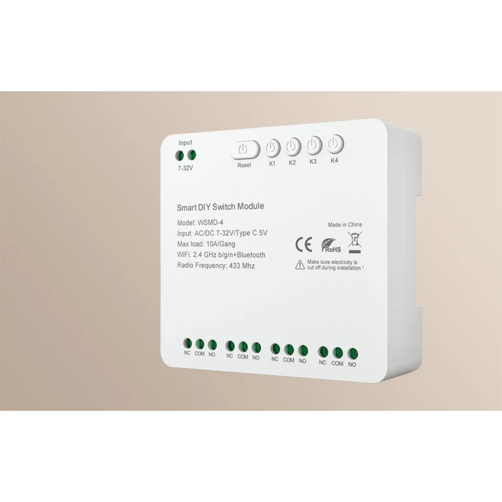 Az Avatto WSMD-4 32V egy intelligens, négycsatornás DIY kapcsolómodul, amely lehetővé teszi több eszköz egyidejű távvezérlését. A 2,4 GHz-es Wi-Fi és Bluetooth támogatásnak köszönhetően külön vezérlők nélkül vezérelheti a lámpákat, kapukat, szivattyúkat, redőnyöket és még sok mást. Ideális az automatizálással foglalkozó hobbisták és professzionális telepítők számára, akik egy sokoldalú, mégis könnyen konfigurálható eszközzel szeretnék bővíteni rendszerüket.