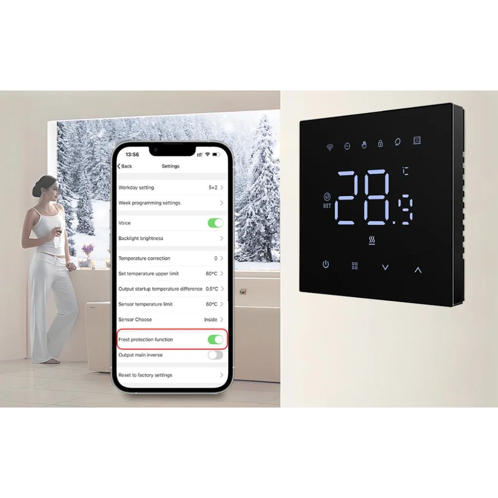 Az Avatto termosztát nagy pontosságú beállításai, amelyek akár 0,5°C-os pontossággal szabályozzák a hőmérsékletet, biztosítják a tökéletes vízhőmérsékletet, ami kényelmet és energiatakarékosságot eredményez. A készülék 0,1°C-os pontossággal jeleníti meg a hőmérsékletet. Hiszterézis funkciót is kínál, amely lehetővé teszi a hőmérsékleti tartomány 0,5°C-tól 10°C-ig történő szabályozását.