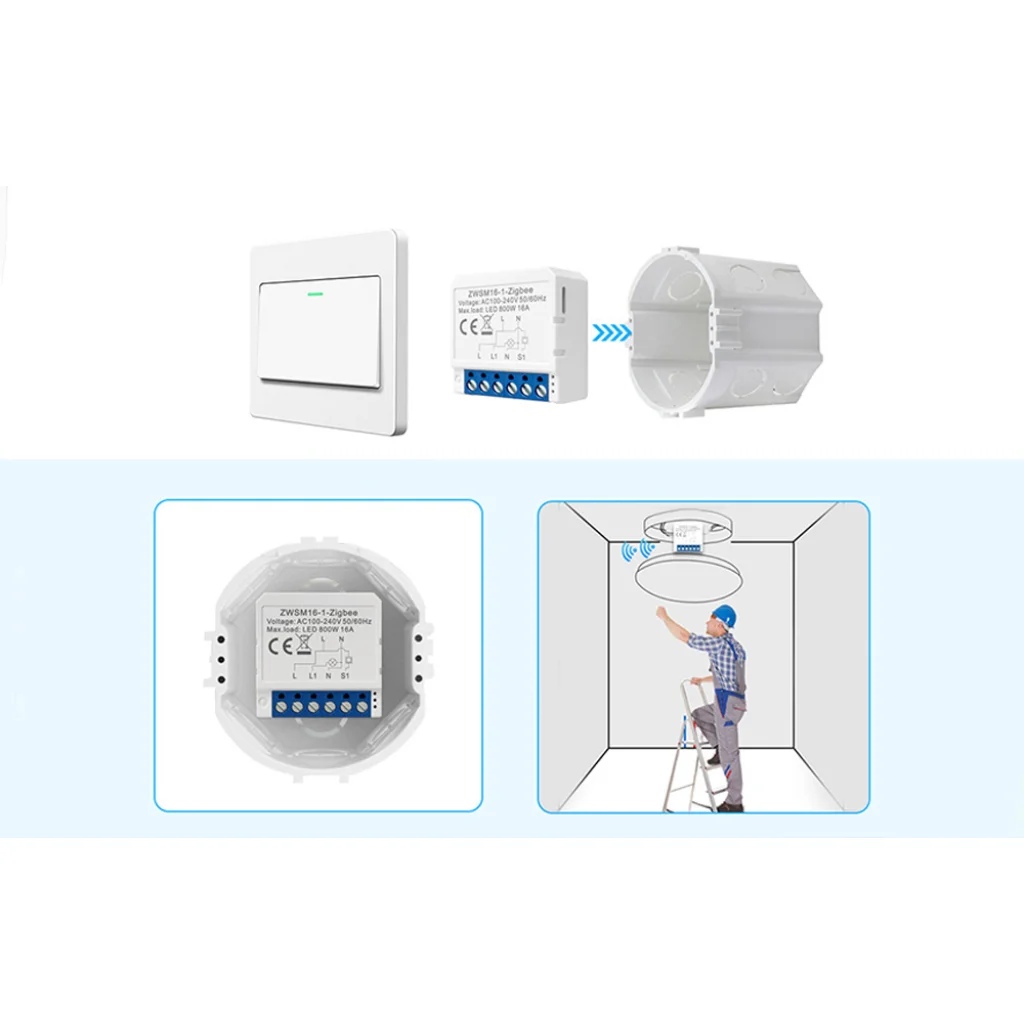 Kompakt kialakításának köszönhetően a ZWSM16-W1 kompatibilis különböző típusú kapcsolókkal és a piacon lévő szerelődobozok 95%-ába beleillik. Egy lámpához is rögzíthető. Telepítése nem okoz problémát és nem tart sokáig. Továbbá 2 kapcsolót is használhatsz egyetlen lámpa működtetéséhez, például a lépcső mellé ideális lehet. Így kényelmesen kapcsolhatod le a földszintet, és felkapcsolhatod az emeletre menet!