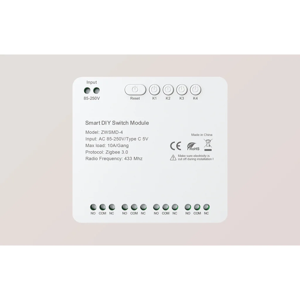 Az Avatto ZWSMMD-4-250V egy 4 csatornás ZigBee kapcsolómodul feszültségmentes érintkezővel, amelyet úgy terveztek, hogy biztonságosan és pontosan kezelje az eszközöket DC 250V-ig. Minden csatorna akár 10 A terhelést is támogat, ami nagy rugalmasságot biztosít a világítás, az otthoni automatizálás vagy a vezérlőrendszerek vezérlésében. A feszültségmentes érintkező használata ideálissá teszi a modult ott, ahol a tápáramkör és a vezérlőjel szétválasztása szükséges.