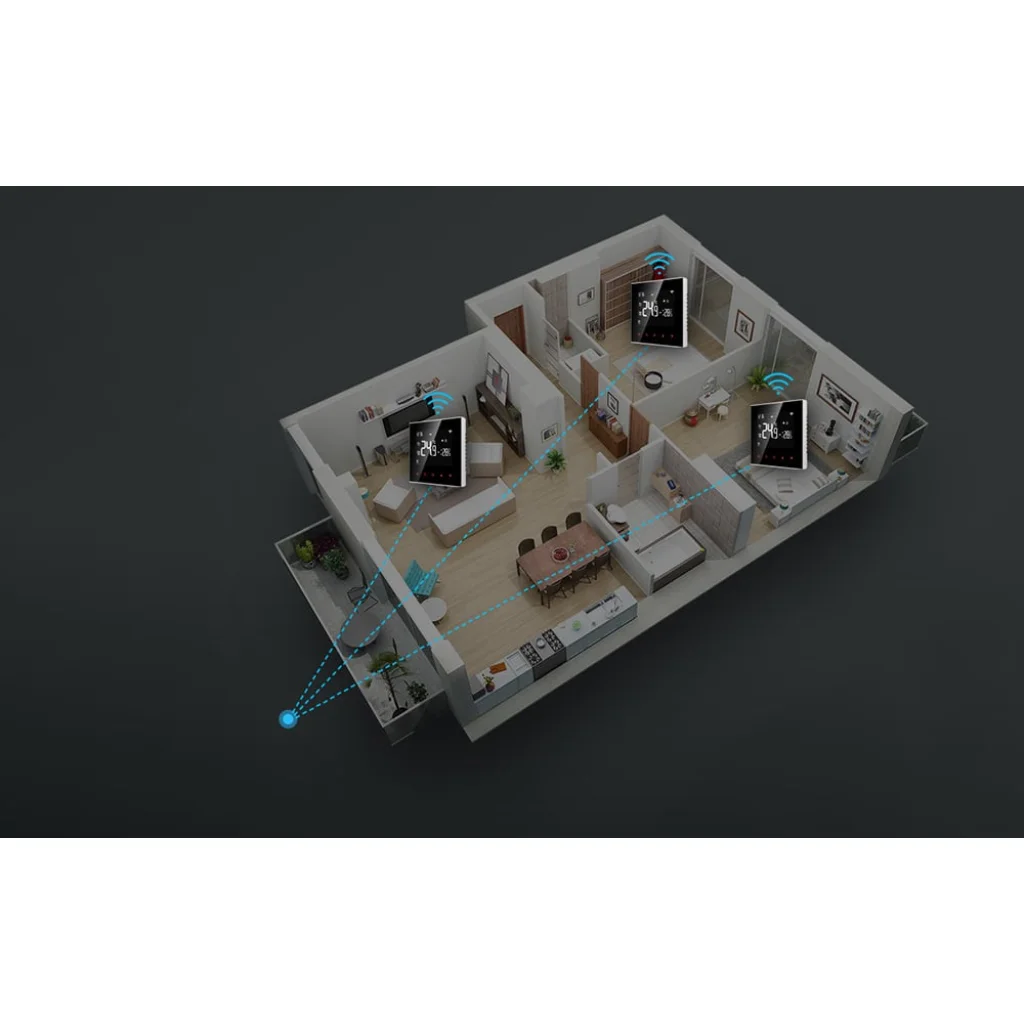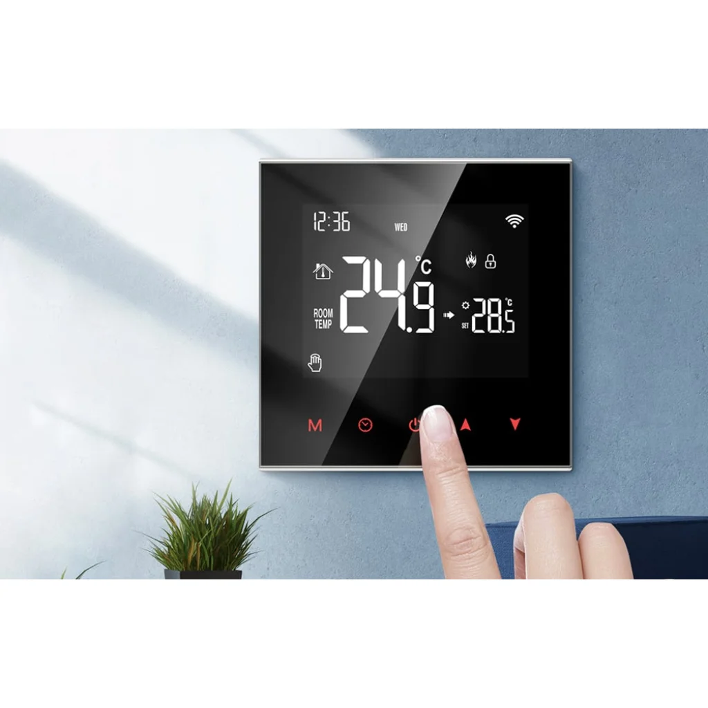 A Tuya vagy Smart Life alkalmazásból programozhatja a termosztát működését. A készülék támogat különböző hőmérséklet-beállításokat 5+2 / 6+1 / 7 napos időszakokra, napi 6 időmód mellett. Használhat manuális és automatikus módokat is.
