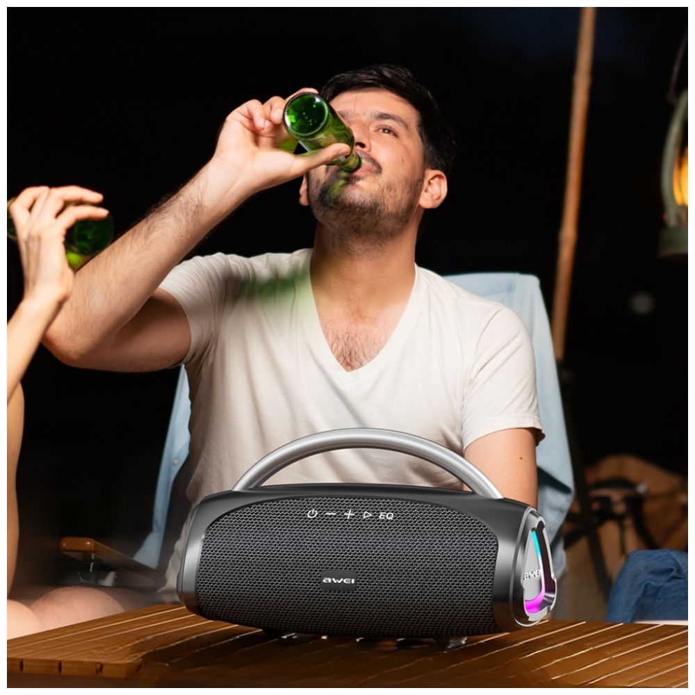 Az AWEI KA39 vezeték nélküli hangszóró elegáns dizájnt és magas funkcionalitást kínál. Kompakt kialakítása kényelmes fogantyúval lehetővé teszi, hogy könnyen magával vigye bárhová – a nappalitól kezdve a baráti kültéri összejövetelekig. A beépített RGB világítással rendelkező fekete ház modern hangulatot biztosít és egyedi légkört teremt a zenelejátszás közben. A készülék használata kényelmes kezelőgombokat kínál és egyértelmű teljesítményjelzőt nyújt, amely megmutatja az üzemi állapotot. Ideális választás azok számára, akik a mobilitást és a stílust értékelik.