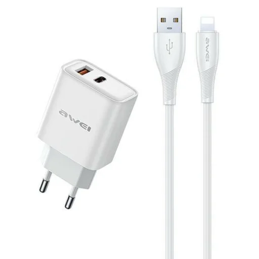 AWEI nice. hálózati töltő PD81L-EU 22.5W + USB kábel + Lightning fehér/fehér GaN