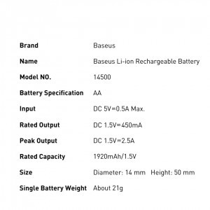 Baseus 2x 1920mAh AA R6 újratölthető elem beépített micro USB töltőporttal fekete és sárga színben (PCWH000211)