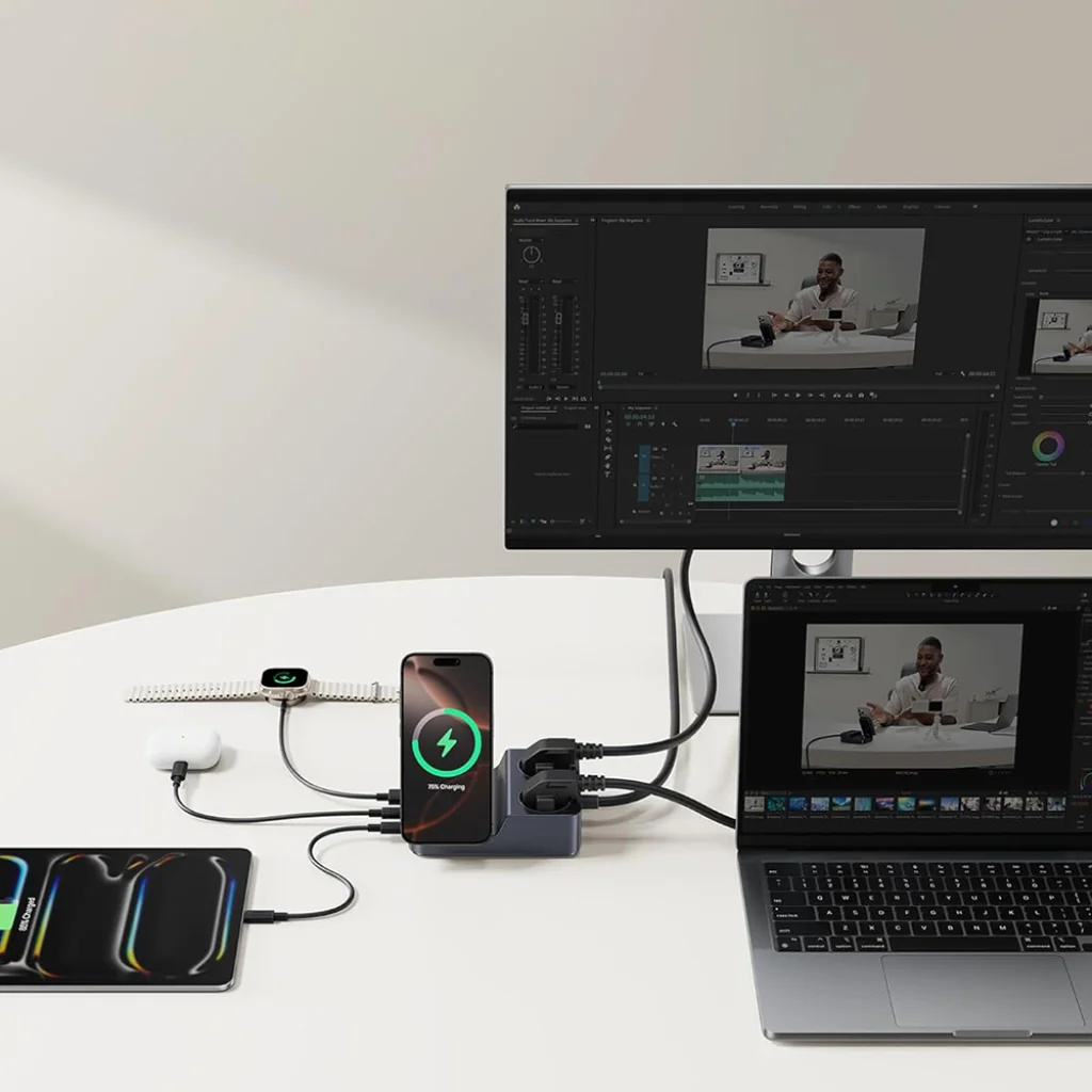- 67W USB-C gyorstöltés: A két USB-C port összesen akár 67W-os teljesítményt is képes leadni, biztosítva a laptopok, tabletek és más nagy energiaigényű eszközök villámgyors és stabil töltését. Ideális professzionális munkaállomásokhoz, ahol a hatékonyság és a gyors töltés kulcsfontosságú.