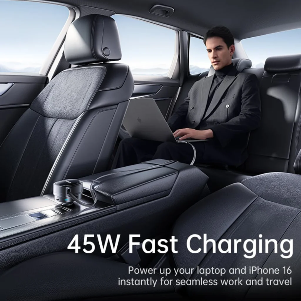 A beépített Type-C kábel és a különálló Type-C port kiválóan alkalmas nagy teljesítményű eszközök, például laptopok vagy a legújabb iPhone modellek szupergyors töltésére, akár 45W-tal. Élvezze a zökkenőmentes munkát és utazást, tudva, hogy eszközei pillanatok alatt feltöltődnek.