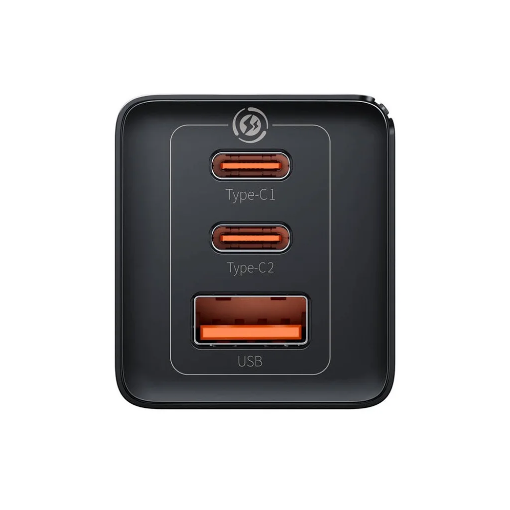 A töltő összesen három USB porttal rendelkezik (2xUSB-C, 1xUSB-A), és a maximális teljesítménye akár 65W is lehet.