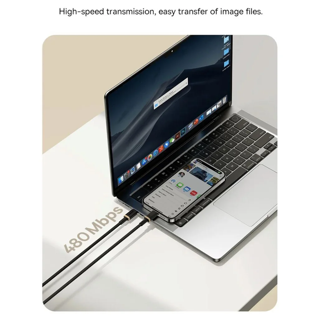 - 480 Mbps adatátviteli sebesség: Nem csupán tölt, de villámgyorsan szinkronizálja is adatait. A 480 Mbps sebességű átvitel lehetővé teszi, hogy nagy fájlokat, képeket és videókat másoljon át pillanatok alatt laptopja és telefonja között, növelve ezzel a hatékonyságot.