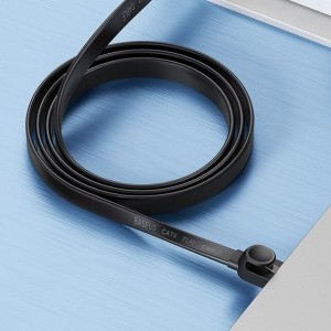 A kábel rendkívül rugalmas és elég lapos ahhoz, hogy szabadon tekerhessük és tárolhassuk. Az RJ45 Ethernet kopásállósággal és tartóssággal rendelkezik. A dugó rugalmas retesszel rendelkezik, amely megkönnyíti a leválasztást.