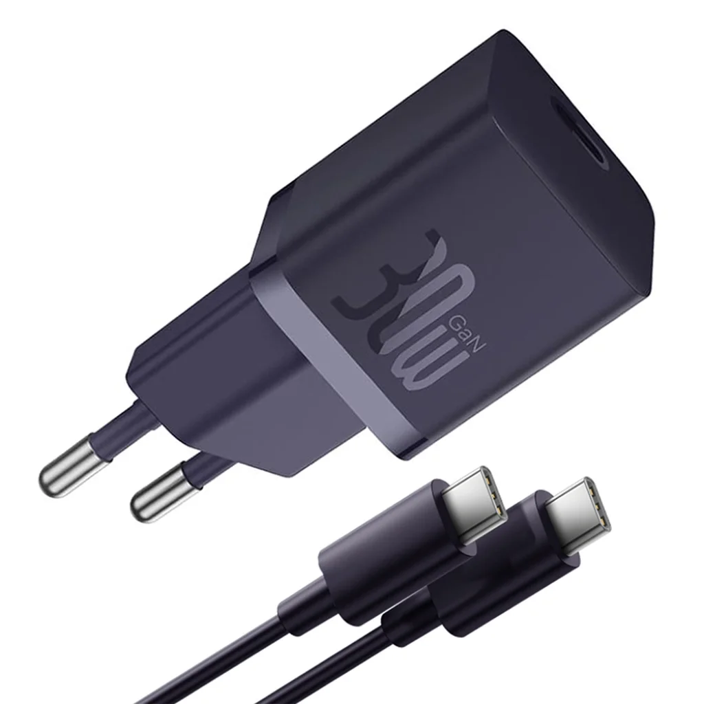 Baseus GaN 30W fali töltő éjféli lila színben, Type-C kábellel