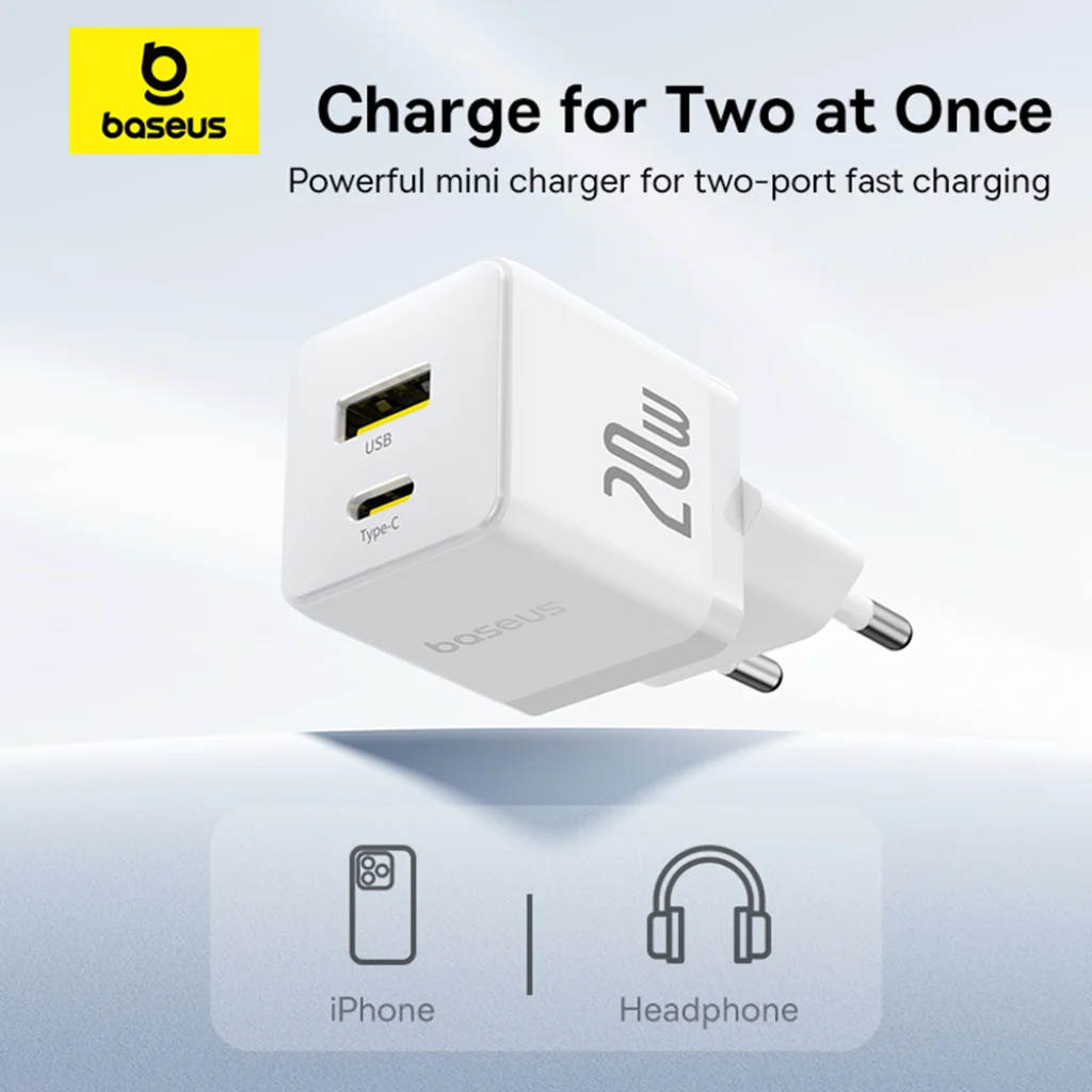 A Baseus Palm 20W fali töltő (P10111608213-01) a modern készülékek gyors és biztonságos töltésének tökéletes megoldása. Ez a stílusos, holdfehér gyorstöltő egy USB-A és egy USB-C (Type-C) porttal rendelkezik, így egyszerre két eszköz töltésére is alkalmas, maximális 20W teljesítménnyel. A csomagban egy 1 méteres USB-C Type-C kábel is található, azonnali használatra készen.