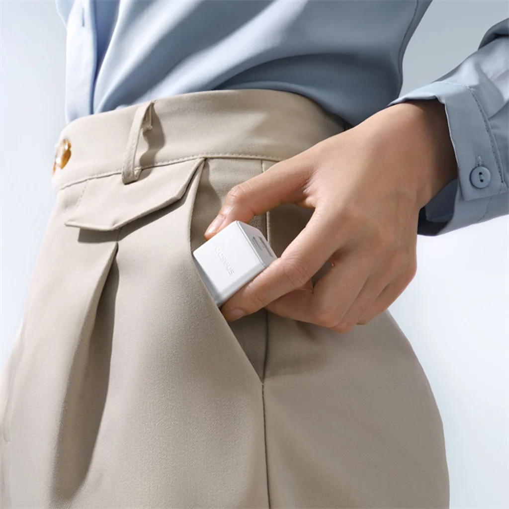 - Kompakt és hordozható kialakítás: A tenyérbe illő, mini méretű töltő könnyedén elfér zsebben vagy táskában, így ideális választás utazáshoz. Kis méretének köszönhetően konnektorban sem akadályozza a szomszédos aljzatok használatát.