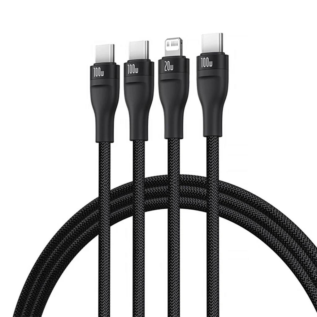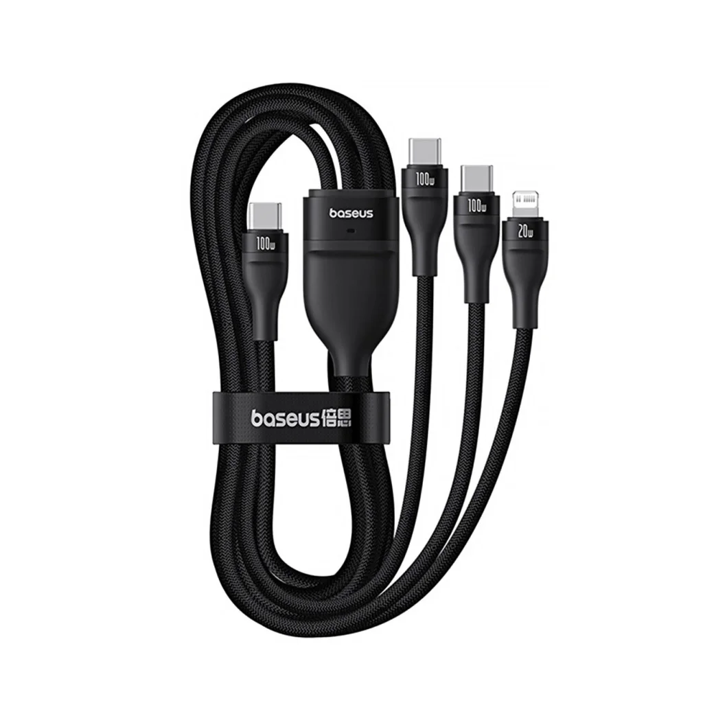 Baseus Flash Series 3 3in1 kábel 100W USB-C - USB-C+USB-C+ Lightning 1.5m + 3 x 0.25 m - fekete
