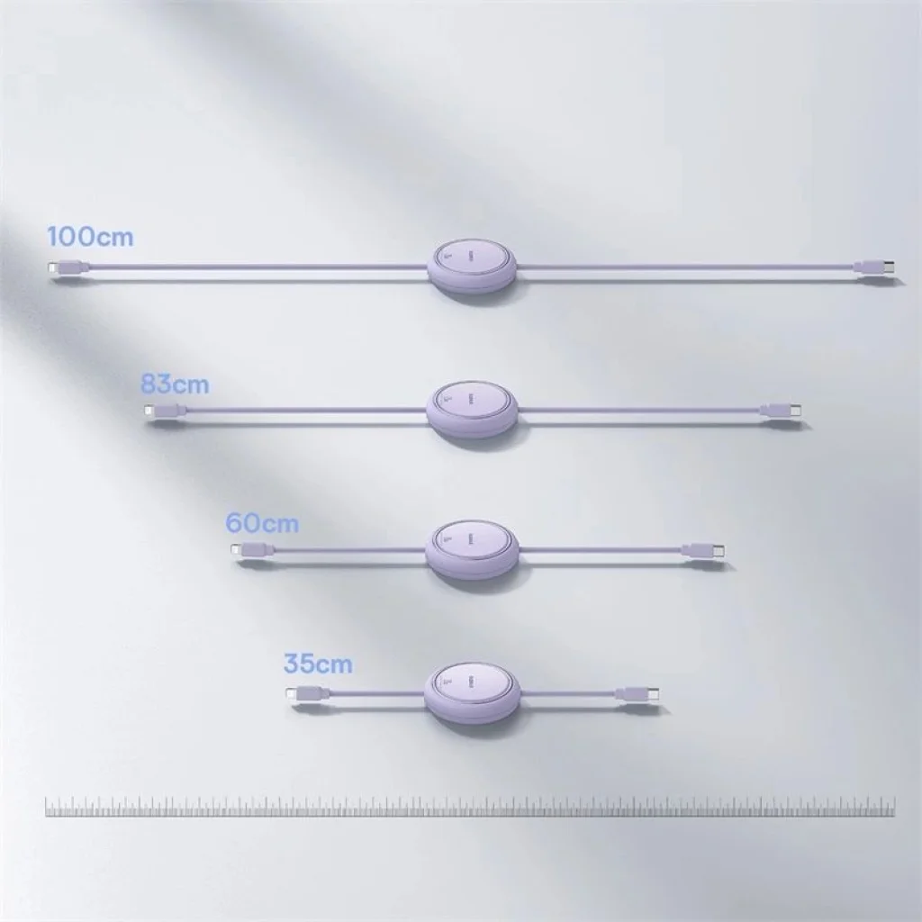 Baseus Free2Pull visszahúzható USB-C / Lightning kábel, akár 20W-os teljesítménnyel és 1 m hosszúsággal - lila